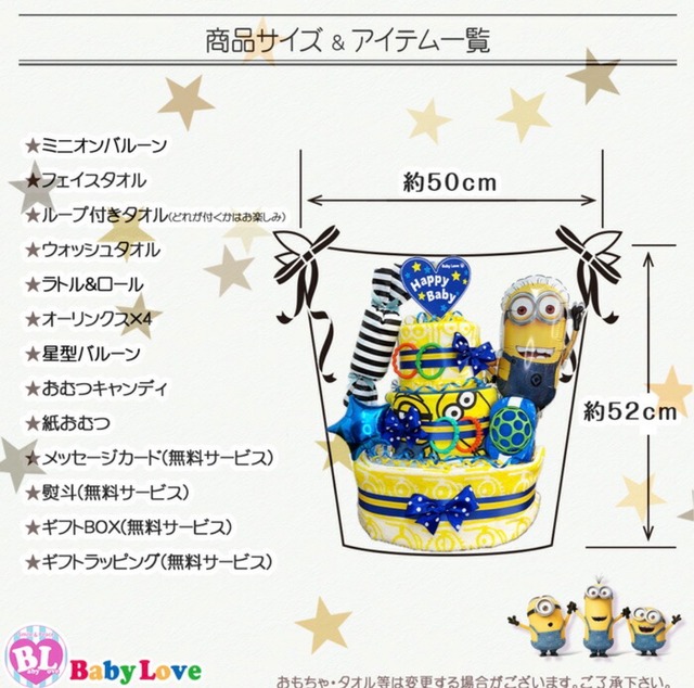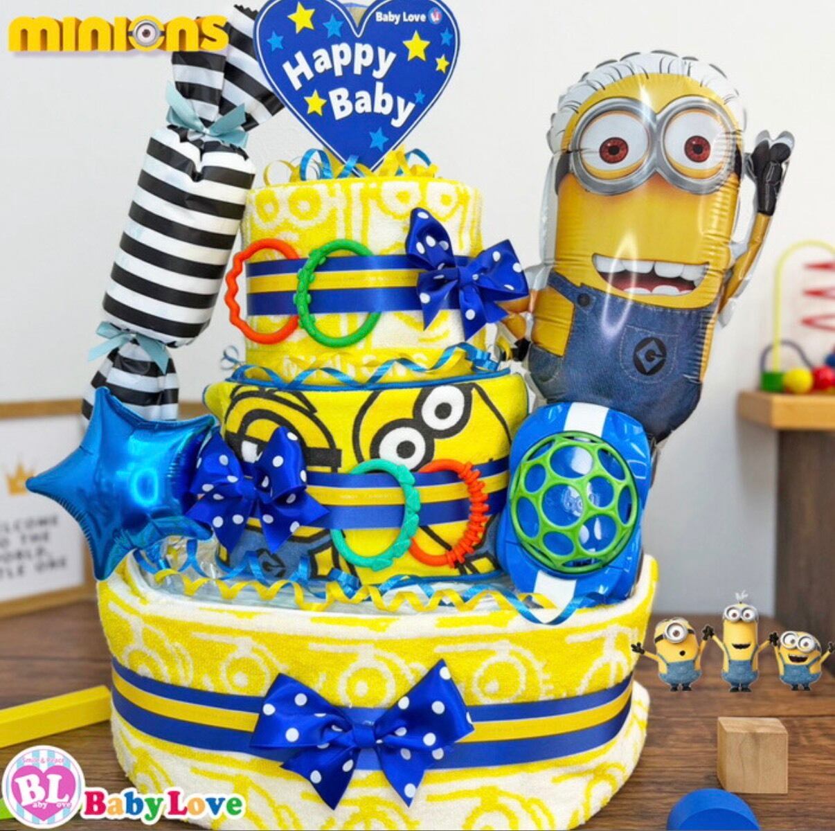【ミニオンズ おむつケーキ 出産祝い 4段オムツケーキ gift 送料無料】