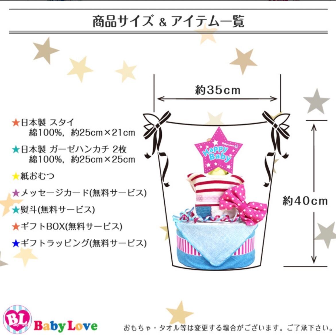 【日本製 スタイ付きオムツケーキ 出産祝い ガーゼハンカチ ピンク】